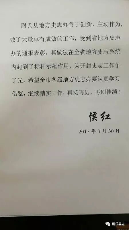 据了解,2016年,36365线路检测中心_365体育娱乐手机平台_365彩票客户端下载史志办在36365线路检测中心_365体育娱乐手机平台_365彩票客户端下载委、县政府的坚强领导下,在市史志办的具体指导下,勇于创新、敢于担当、开拓进取,各项工作均取得比较突出的成绩。36365线路检测中心_365体育娱乐手机平台_365彩票客户端下载史志办在全国独家完成清嘉庆版《洧川县志》《洧川风土志》的译注,填补了洧川作为县级建置时古本志书译注的空白,还建成并开放36365线路检测中心_365体育娱乐手机平台_365彩票客户端下载方志馆(尉氏地情馆),该馆坐落于国家级文物保护单位——刘青霞故居内,建筑面积900平方米,文物保护与方志馆相得益彰,极具特色。带着对史志工作的关心与重视,为促进全市史志工作进一步发展,市长侯红作出上述批示。